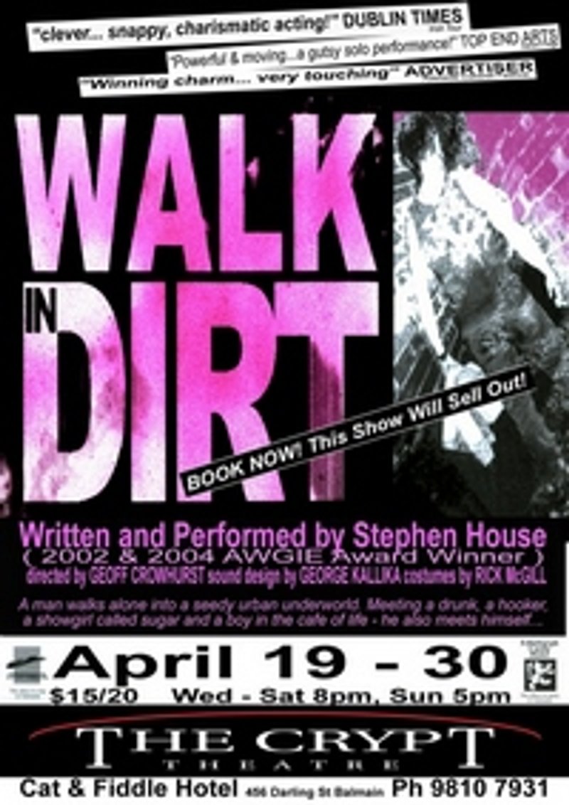 A man walks alone into a seedy urban underworld. Meeting a drunk, a hooker, a showgirl called Sugar and an angry boy in the café of life - he also meets himself. In this one man show, award winning playwright Stephen House asks you to accompany him on a journey into his sometimes dark but profoundly touching world.