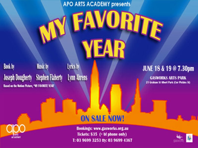 It’s 1954, and Benjy Stone, freshman writer on TV’s King Kaiser Comedy Cavalcade, is assigned the daunting task of baby-sitting veteran Hollywood swashbuckler Alan Swann while he's doing a live guest appearance on the show. The effort to keep the reckless Swann off the booze and out of the papers during the rehearsal week nearly drives Benjy to the brink, when he's given an unexpected glimpse into Swann's broken heart that teaches him about human frailty, tragedy, comedy, love – and about what made 1954 his favorite year. Based on the hit film starring Peter O’Toole and Mark Linn-Baker, “My Favorite Year” is a solid book show in the tradition of Broadway’s classic musicals, with a bright, tuneful, contemporary score by Stephen Flaherty and Lynn Ahrens (“Once On This Island” & “Ragtime”). It’s a nostalgic and very moving comedy about growing up which is sure to put a smile on your lips and a tear in your eye.