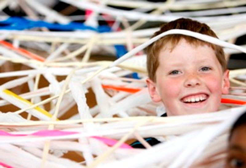 Starting with nothing but a giant peg board, children and families create a landscape together, tangling and weaving coloured elastic through giant poles. The result is like a shared squiggly line drawing in three dimensions that creates a stretchy bouncy playground, fuelled by live music and culminating in a big dance party. Tangled Web is an experiment where children take control to create a giant, abstract, tangled artwork which everyone owns.
