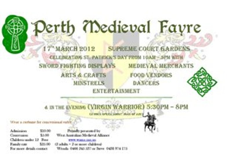 The West Australian Medieval Alliance, proudly presents the Annual Medieval Fayre at the Perth Supreme Court Gardens on Saturday 17th March 2012.