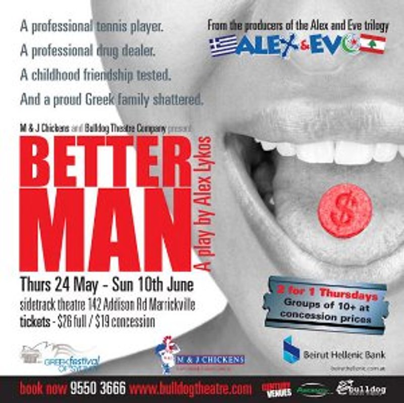Better Man is part of the Greek Festival and we will perform it opening Thursday 24th May through to Sunday 10th June.