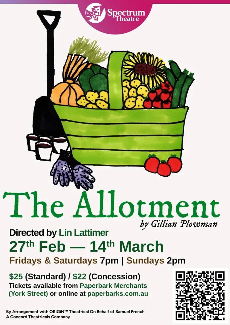 Four women are serving community punishment orders and are growing the vegetables for soup kitchens on an allotment. Marcie is convicted of dangerous driving; Norah, a serial shoplifter; Belle has blackmailed her boss and Lorna, an actress, is convicted of criminal damage. It is the first morning for Daisy, the new probation officer, and the tables are cleverly turned when a traumatic event in her past puts her on a par with the others. The Allotment is preceded by a short work by Barbara Yates Rothwell called That's Showbiz!, where an adjudicator arrives to judge a local village drama festival.
